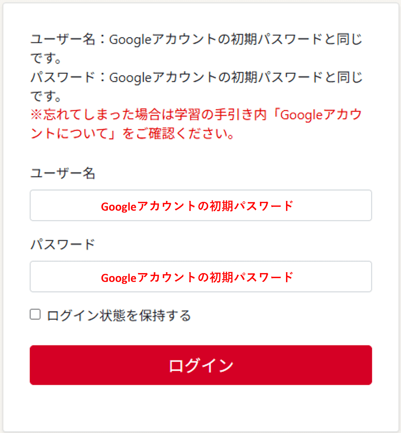 ※初期パスワードは不正ログイン防止のため本サイトには記載できません。学習の手引きを参照ください。