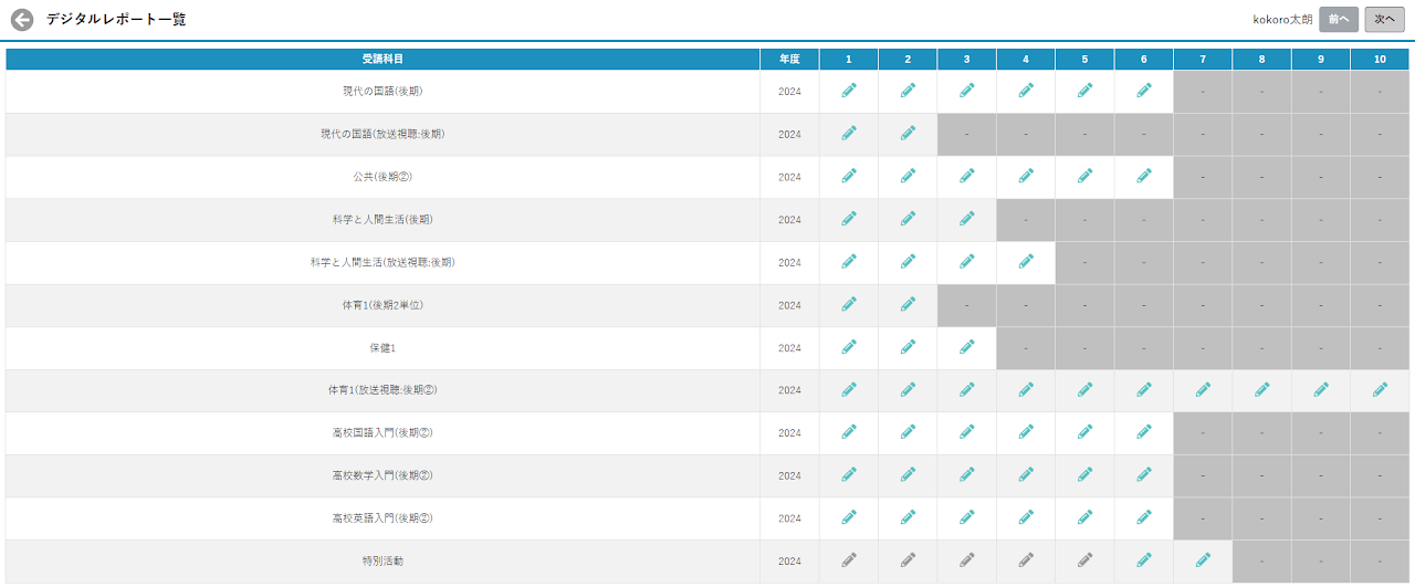自分の教育課程に沿ったレポートが正常に登録されているか確認してください。表示されているレポートに過不足がある場合は直ちに担任の先生へ連絡してください。