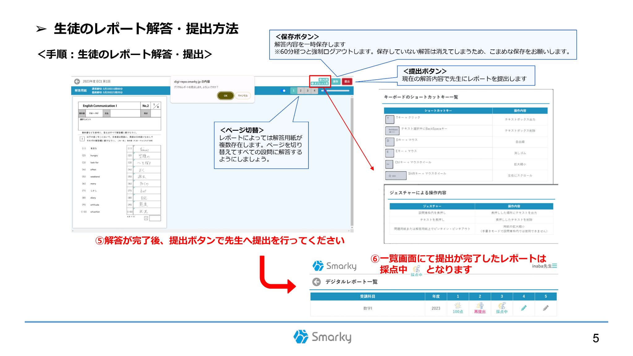 上記を踏まえて誤提出することがないよう保存と提出ボタンの押し間違えには十分注意して学習に取り組んでください。