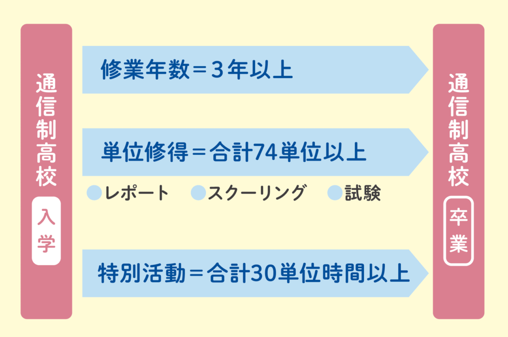 通信制課程の学習の基本は、添削指導(レポート)、面接指導(スクーリング)、試験です。自分のライフスタイルに応じて学習計画を立てられる点が通信制課程のメリットといえます。そのため通信制高校に通うのは、働きながら高卒資格取得をめざす人や、自分のペースで学べる環境を選ぶ人、高校を転校した人などさまざまです。さらに近年ではスポーツや趣味・芸能活動など、学業以外の活動に専念したい人が夢や目標をもって通信制高校を選ぶ事例も多く、少子化で全国の高校生の総数は減る一方、通信制高校の生徒数は増え続けています。