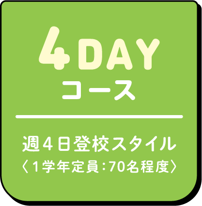 全日制高校と同じように平日の大半を登校して学べるのが、4DAYコースの最大の魅力です。月~水曜日の午前中は添削課題(レポート)範囲を中心に学習支援を受け、木曜日はスクーリング(授業)で教科書の内容等をより深く学んでいきます。さらに、午後からは夢に向かって学べる選択授業!規則正しい学校生活の中で、充実したスクールライフをおくることができるコースです。